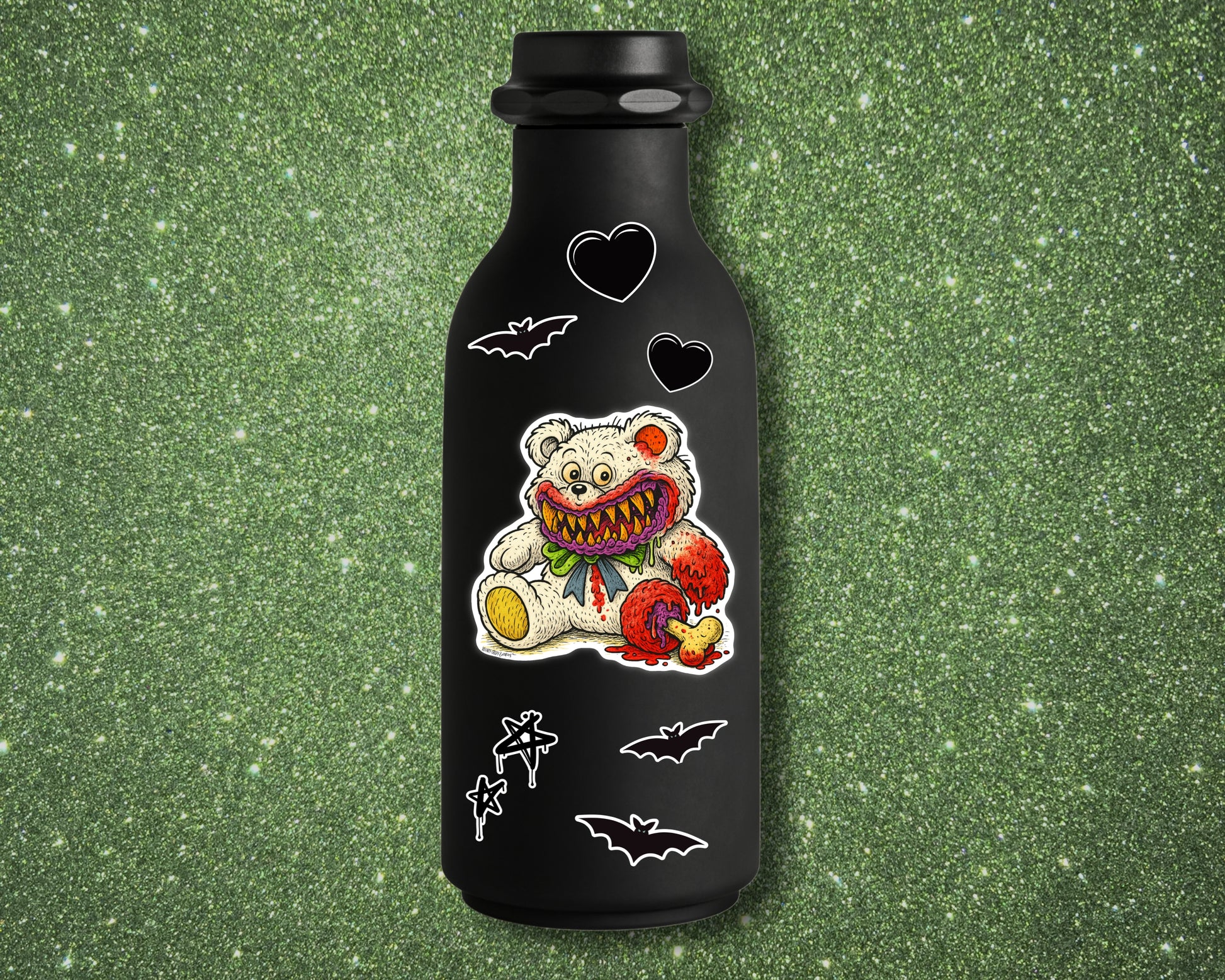 Slap some creepy cuteness on your laptop, water bottle, or unsuspecting victims... uh, I mean surfaces. 🩸 Each disturbingly adorable sticker is spawned from my original handmade Creeps and digitally cursed into cartoon form. 🧟 They’re durable, water resistant, scratch resistant, and sealed tighter than a crypt with glossy laminate.