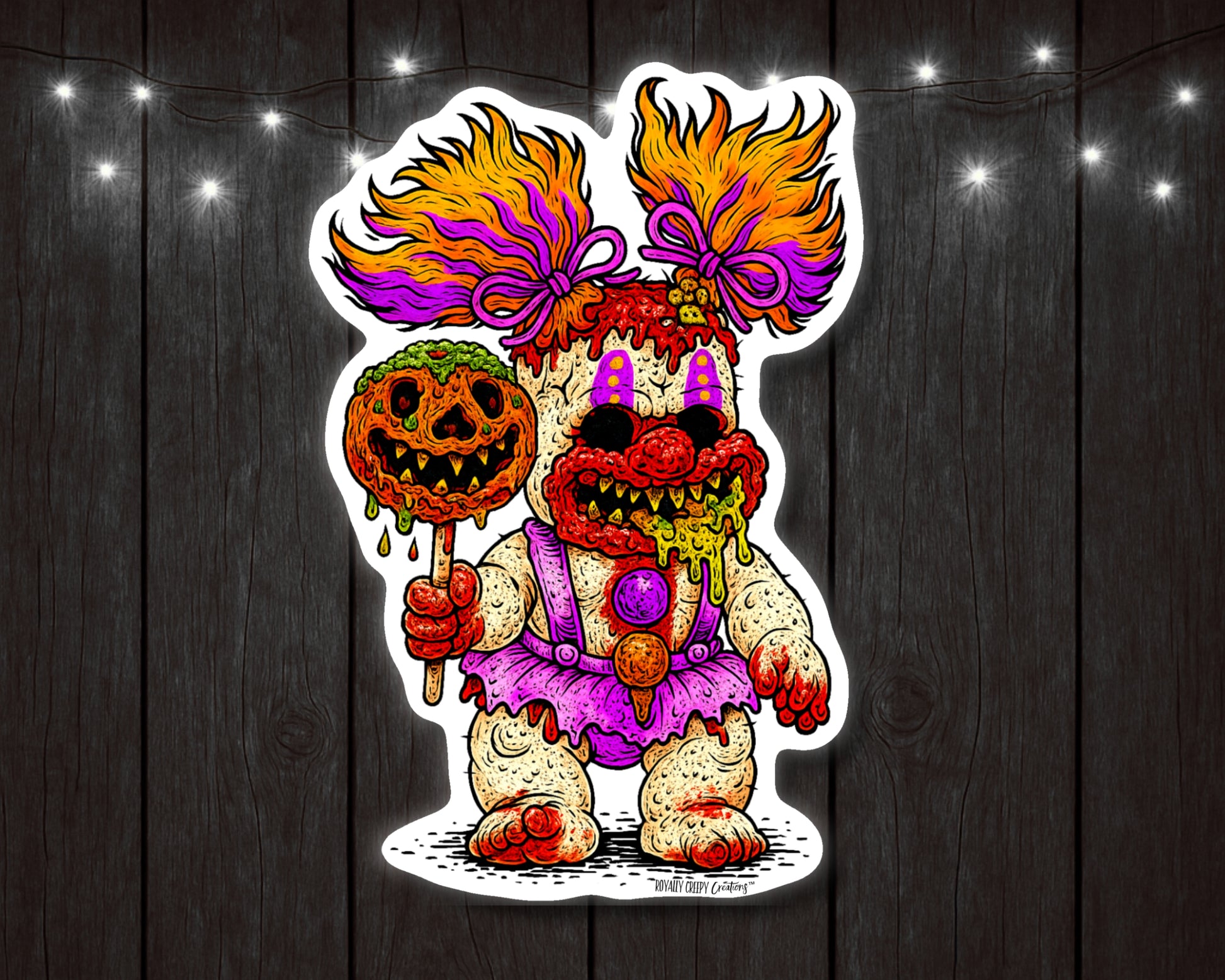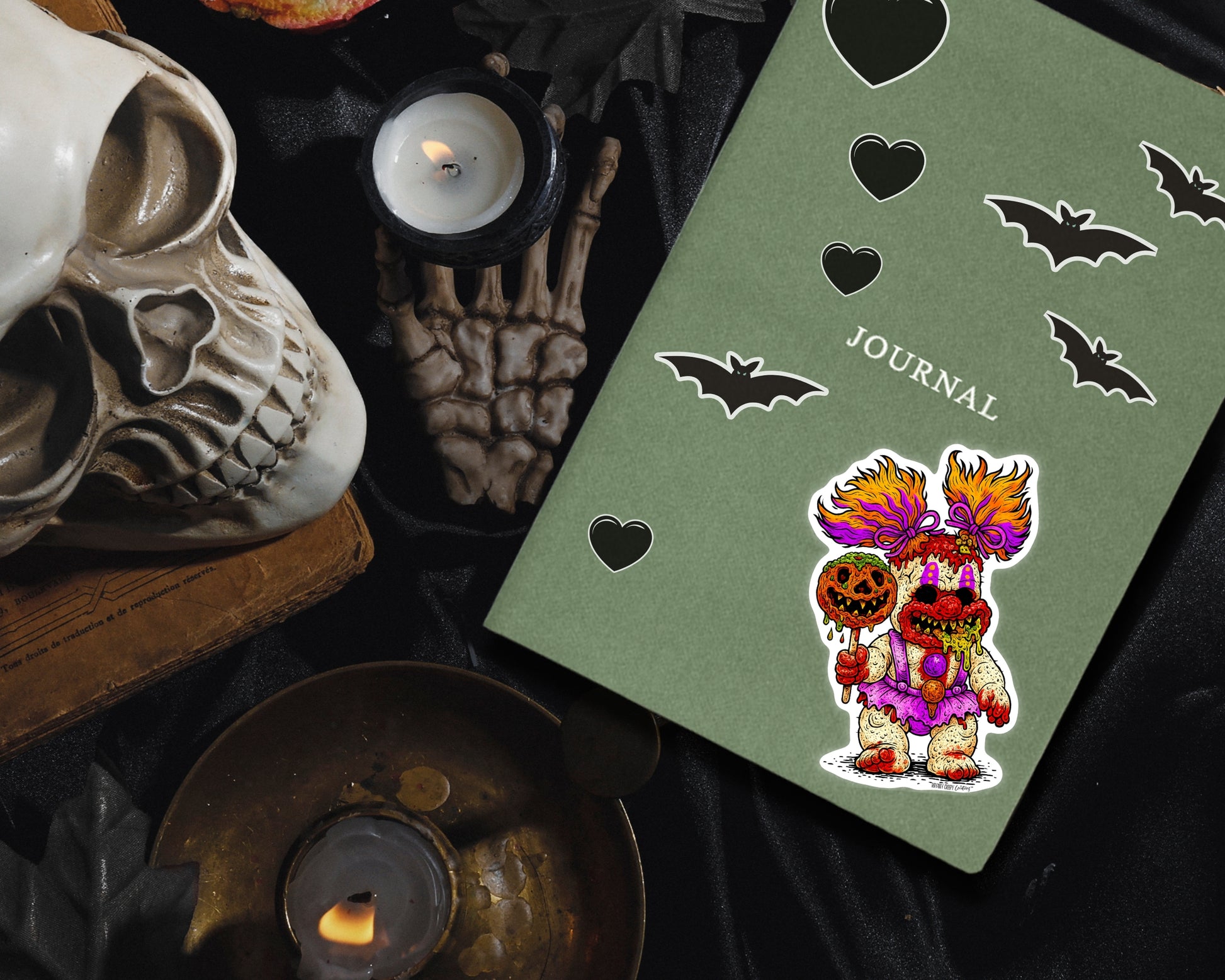 Full transparency: These creepy-cute sticker designs are made using a combo of my original handmade creepy creations and AI-assisted illustration tools.