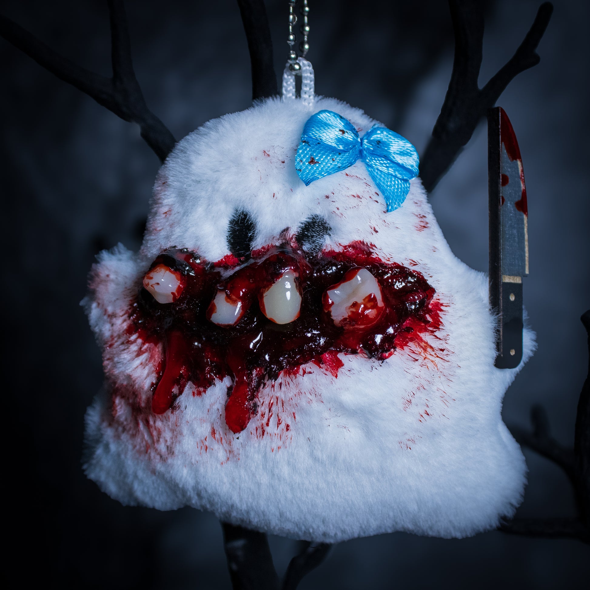 These clingy Emotional Support Ghosts have attachment issues and honestly, a few haunting tendencies. But physically, they latch on just fine with their built-in ball chain. Handcrafted, emotionally unhinged and just a little stab-happy, each ghost clings to your keys, bag, or Creepmas tree with disturbing dedication.