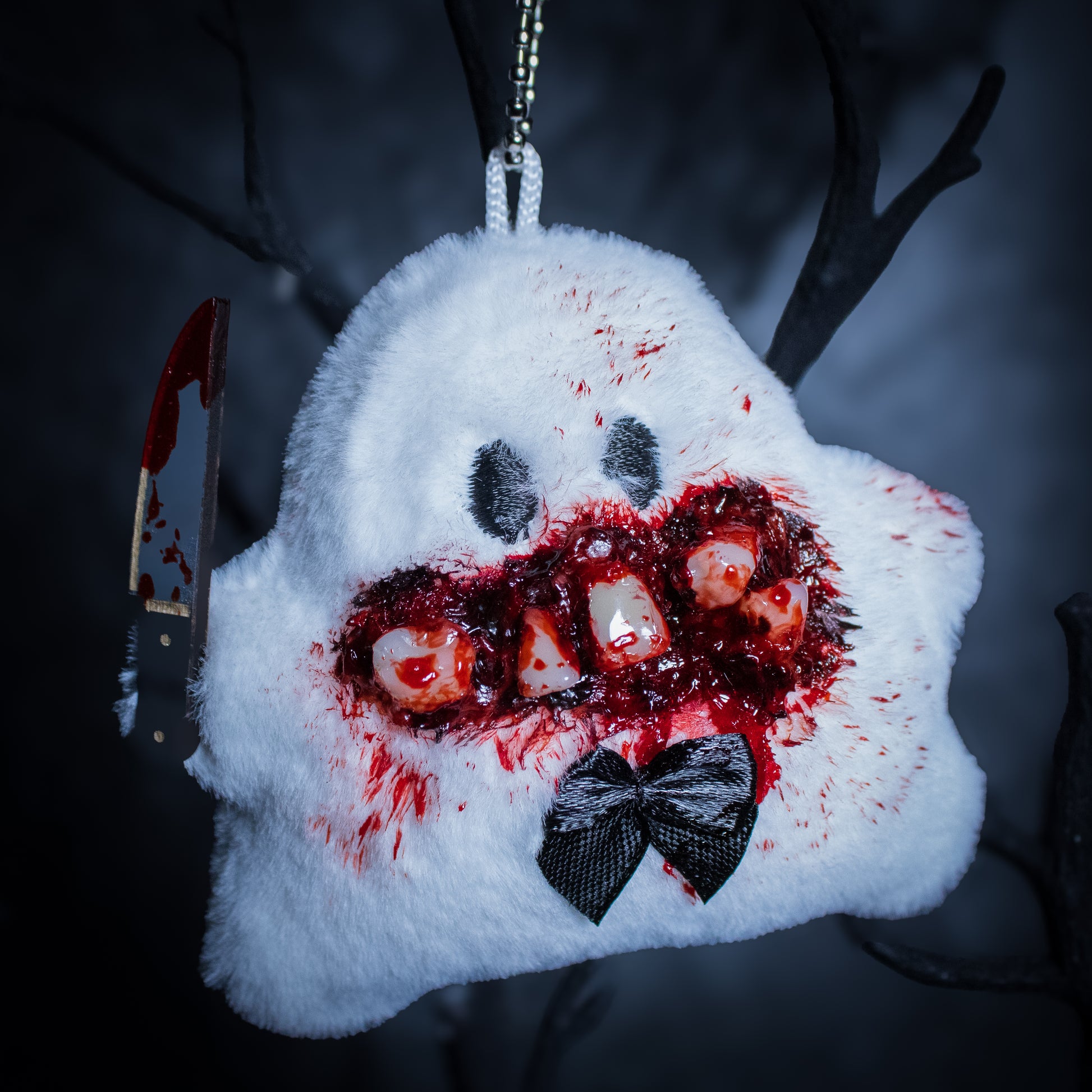These clingy Emotional Support Ghosts have attachment issues and honestly, a few haunting tendencies. But physically, they latch on just fine with their built-in ball chain. Handcrafted, emotionally unhinged and just a little stab-happy, each ghost clings to your keys, bag, or Creepmas tree with disturbing dedication.