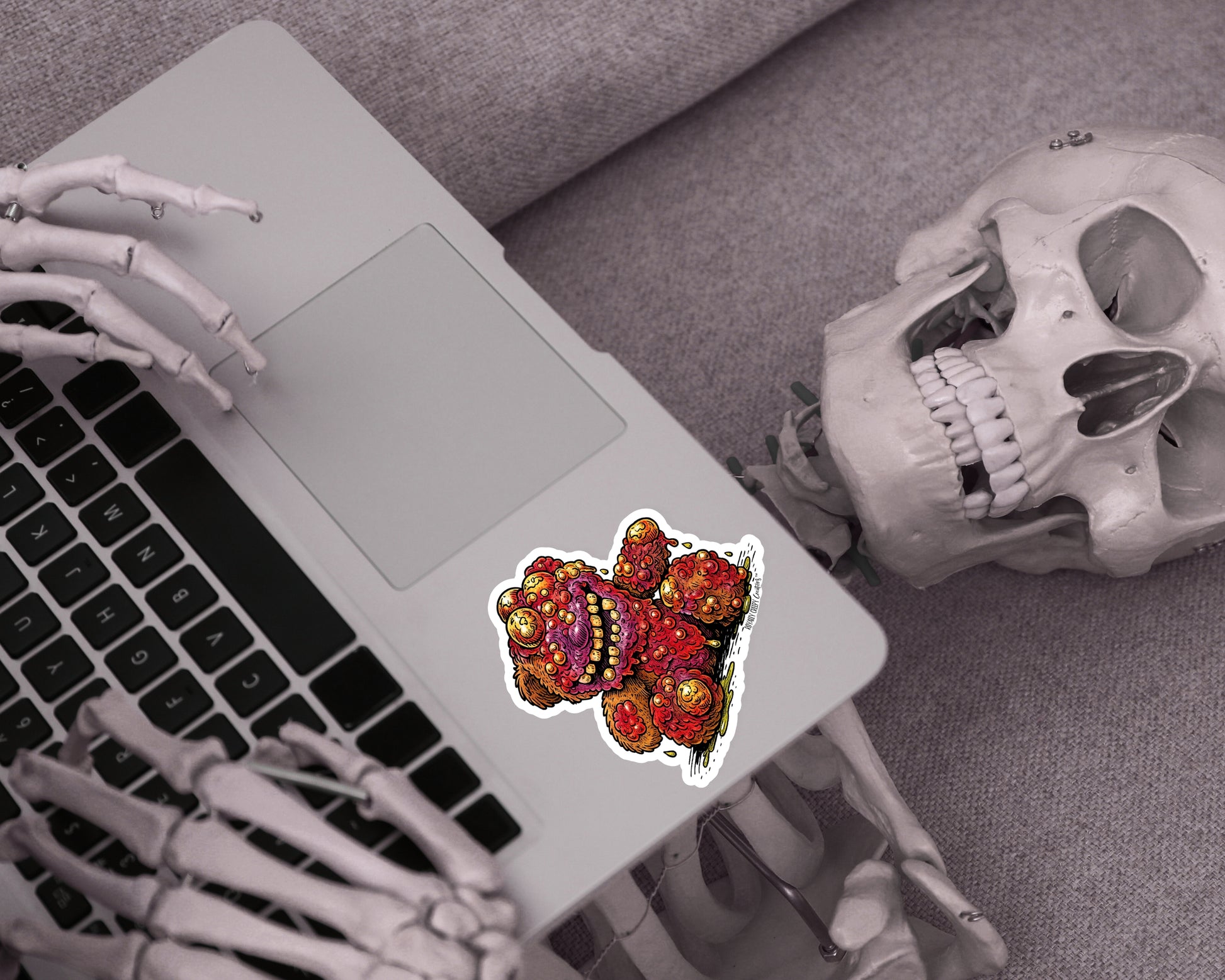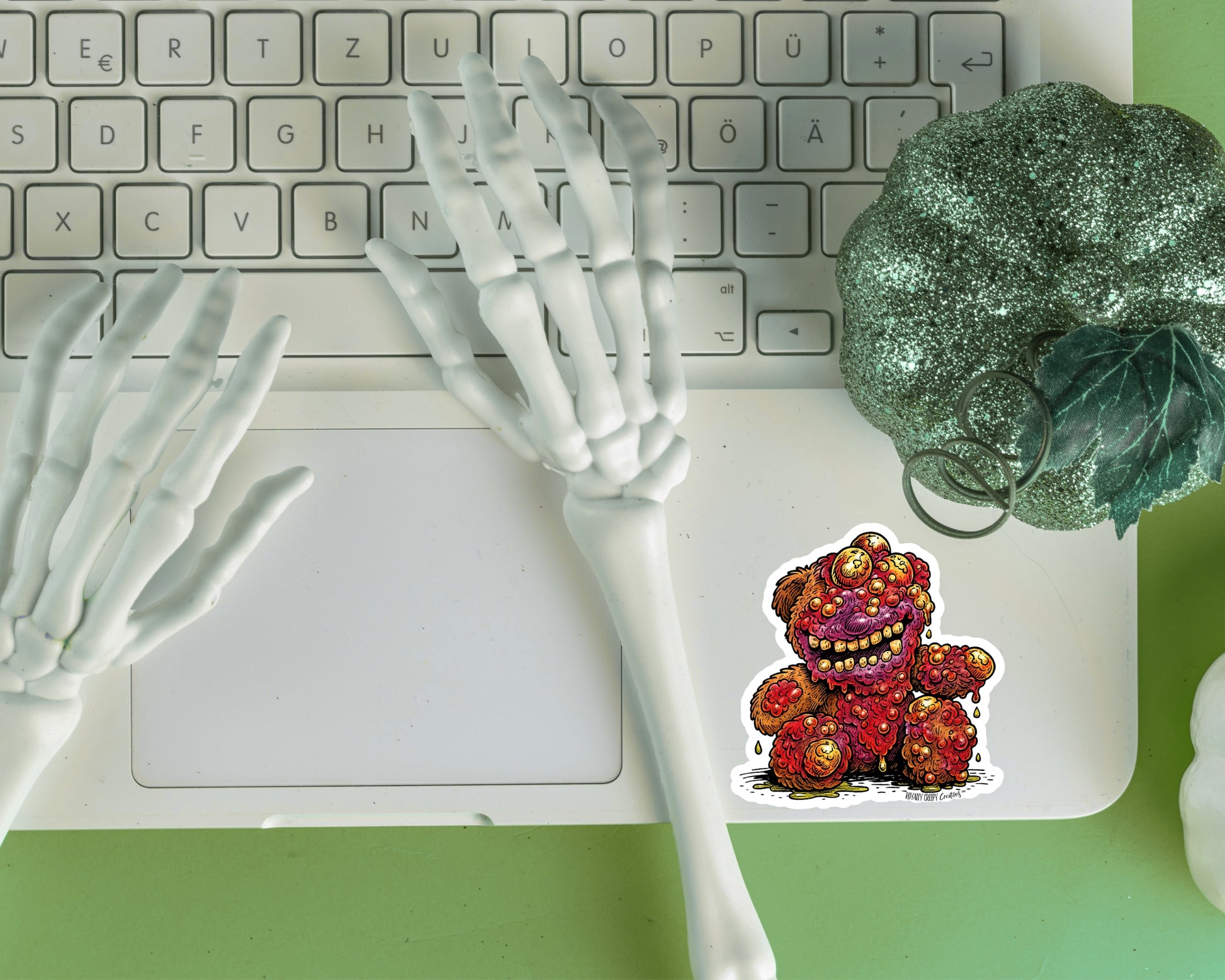 Full transparency: These creepy-cute sticker designs are made using a combo of my original handmade creepy creations and AI-assisted illustration tools.