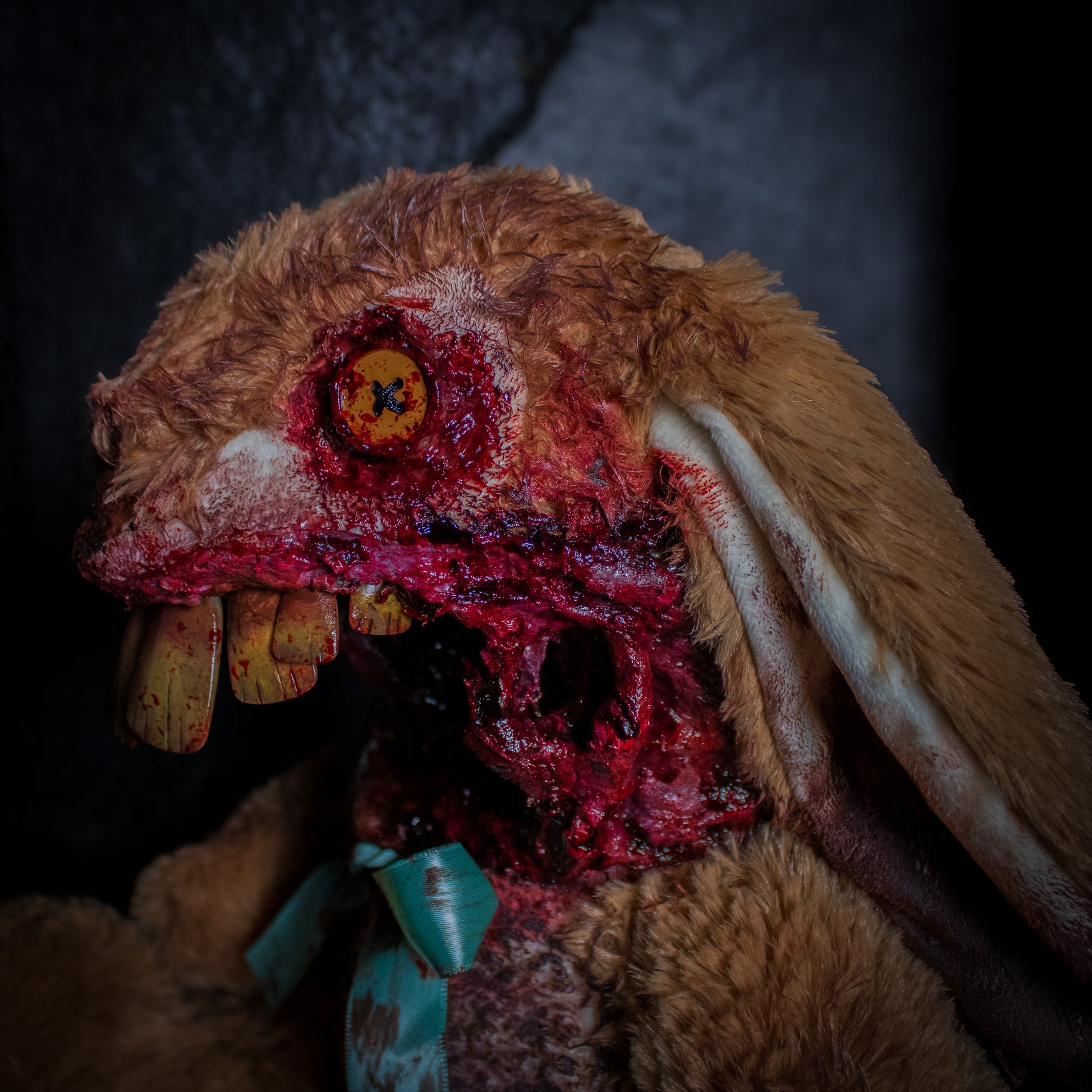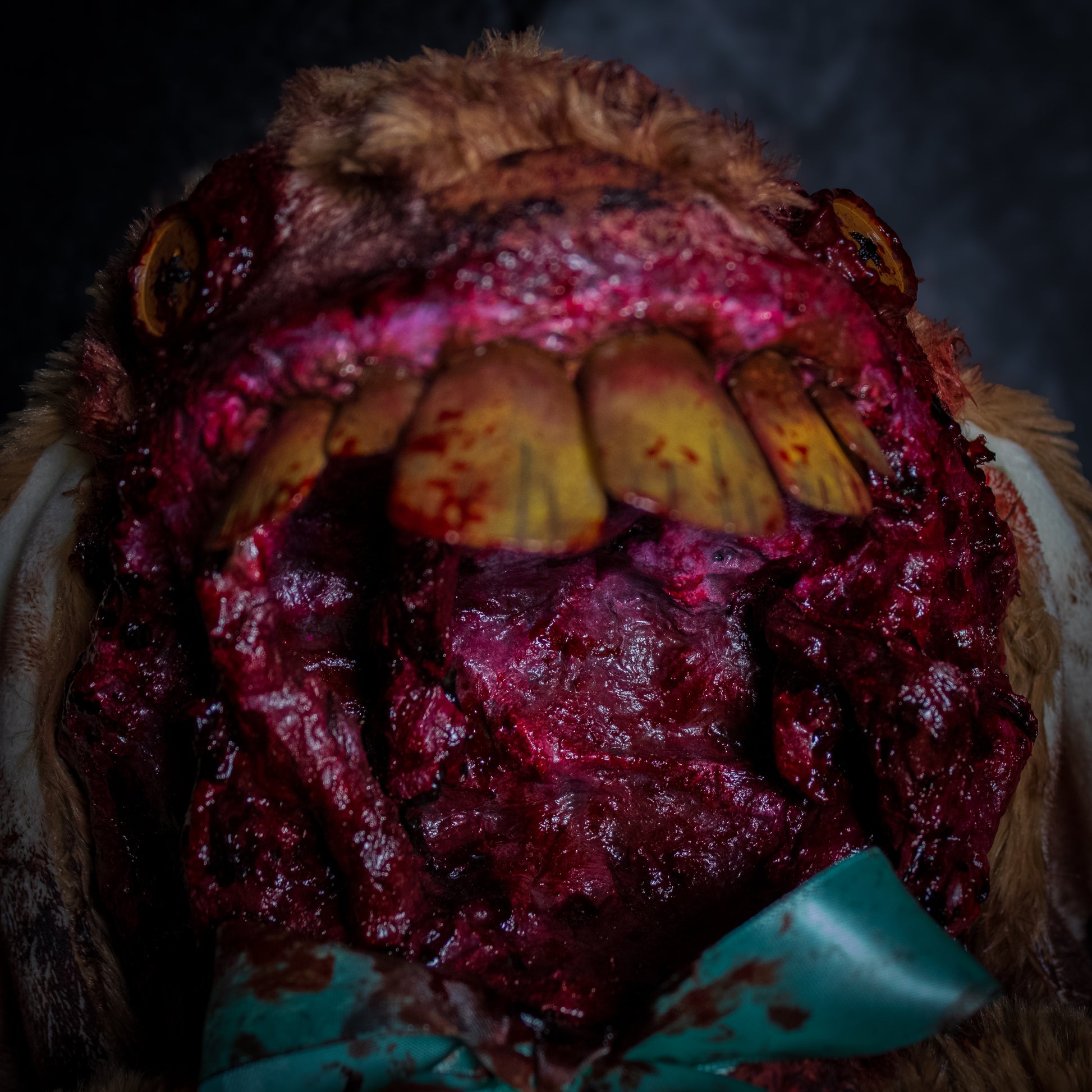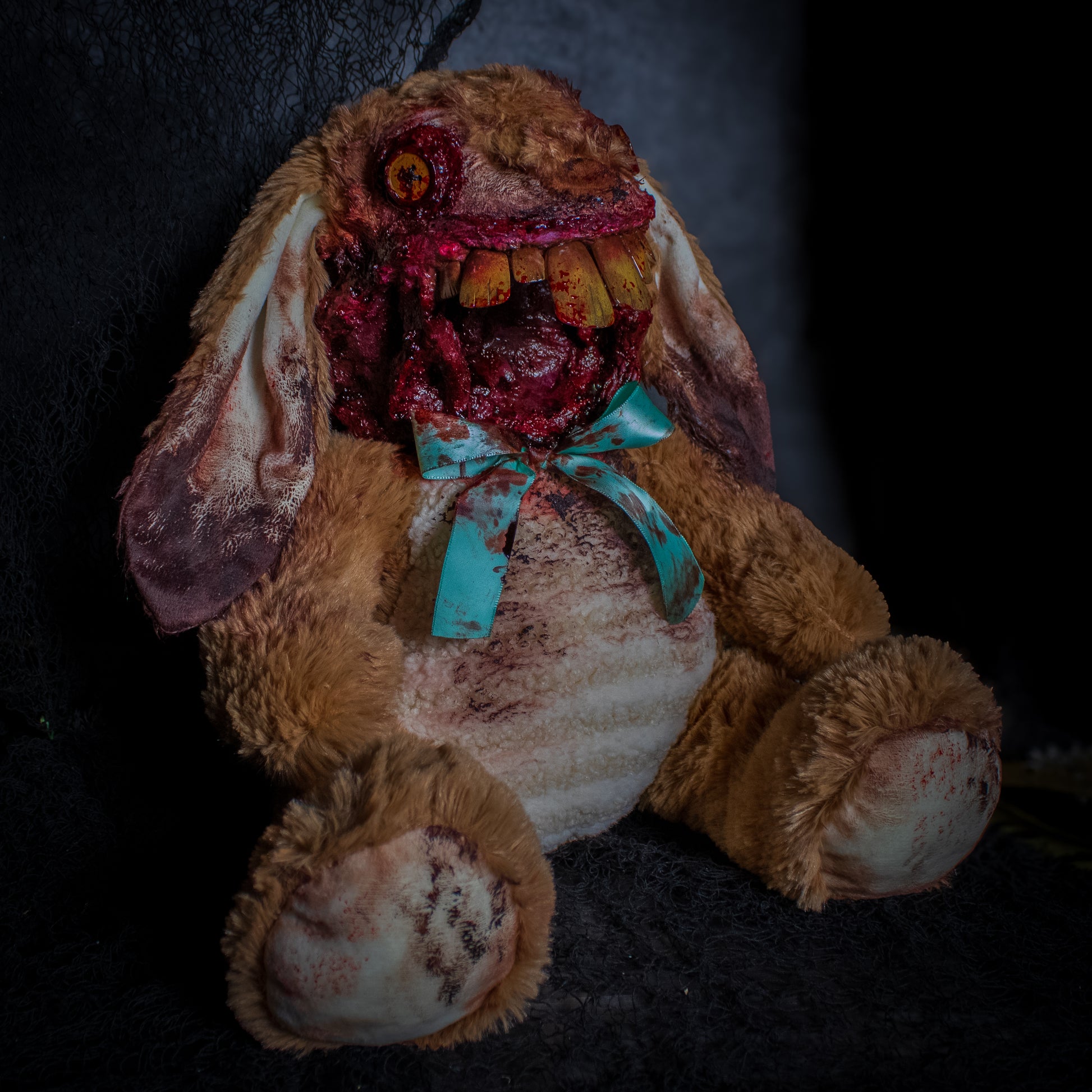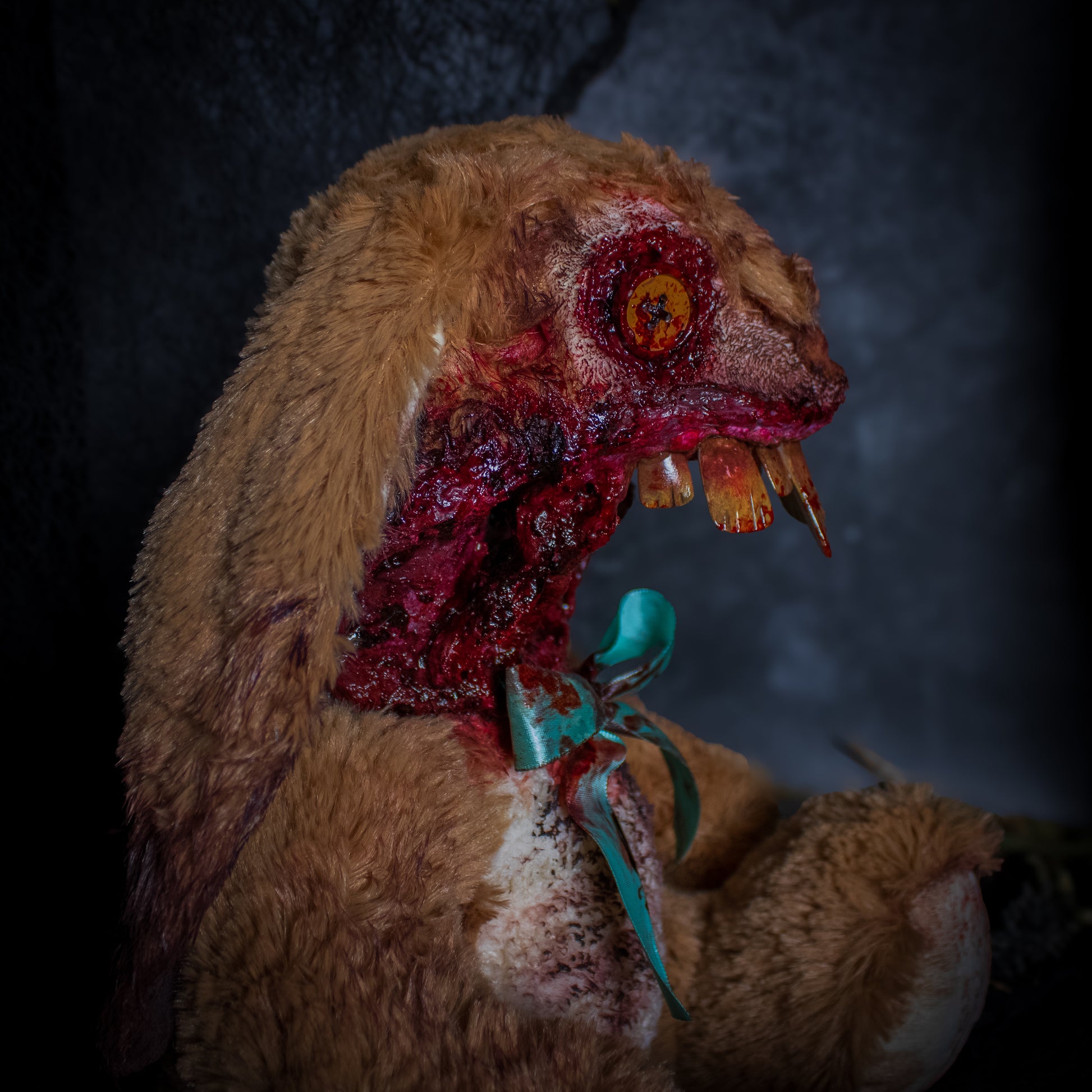 This is a stuffed toy that was up-cycled, re-designed and hand crafted into something unique by Royally Creepy Creations. This is a one of a kind creation that you can’t get anywhere else. This is intended to be a creepy art piece. Any distressing, cracking, discoloring, etc. are considered intentional and add character and originality to to the art piece.