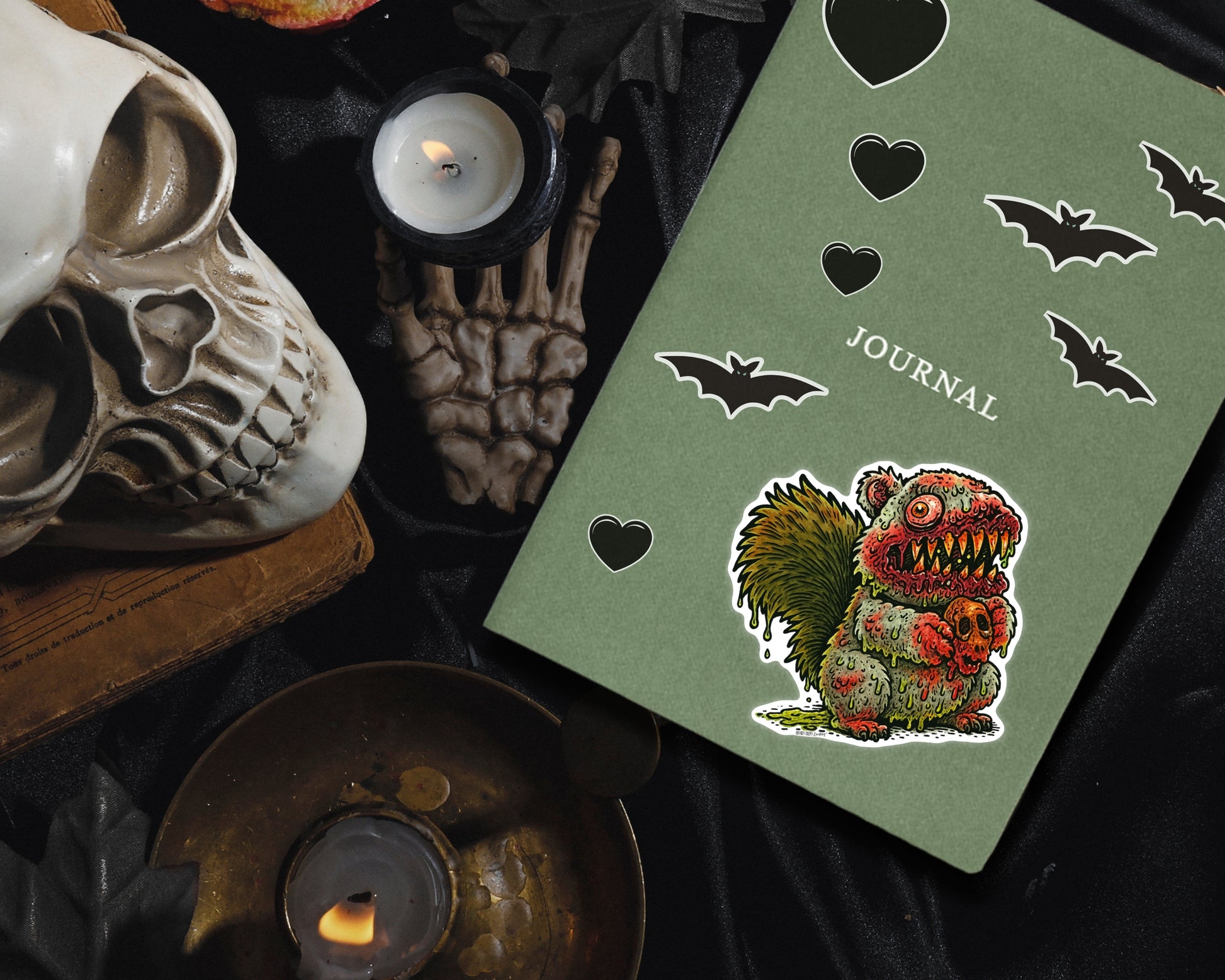 Full transparency: These creepy-cute sticker designs are made using a combo of my original handmade creepy creations and AI-assisted illustration tools.