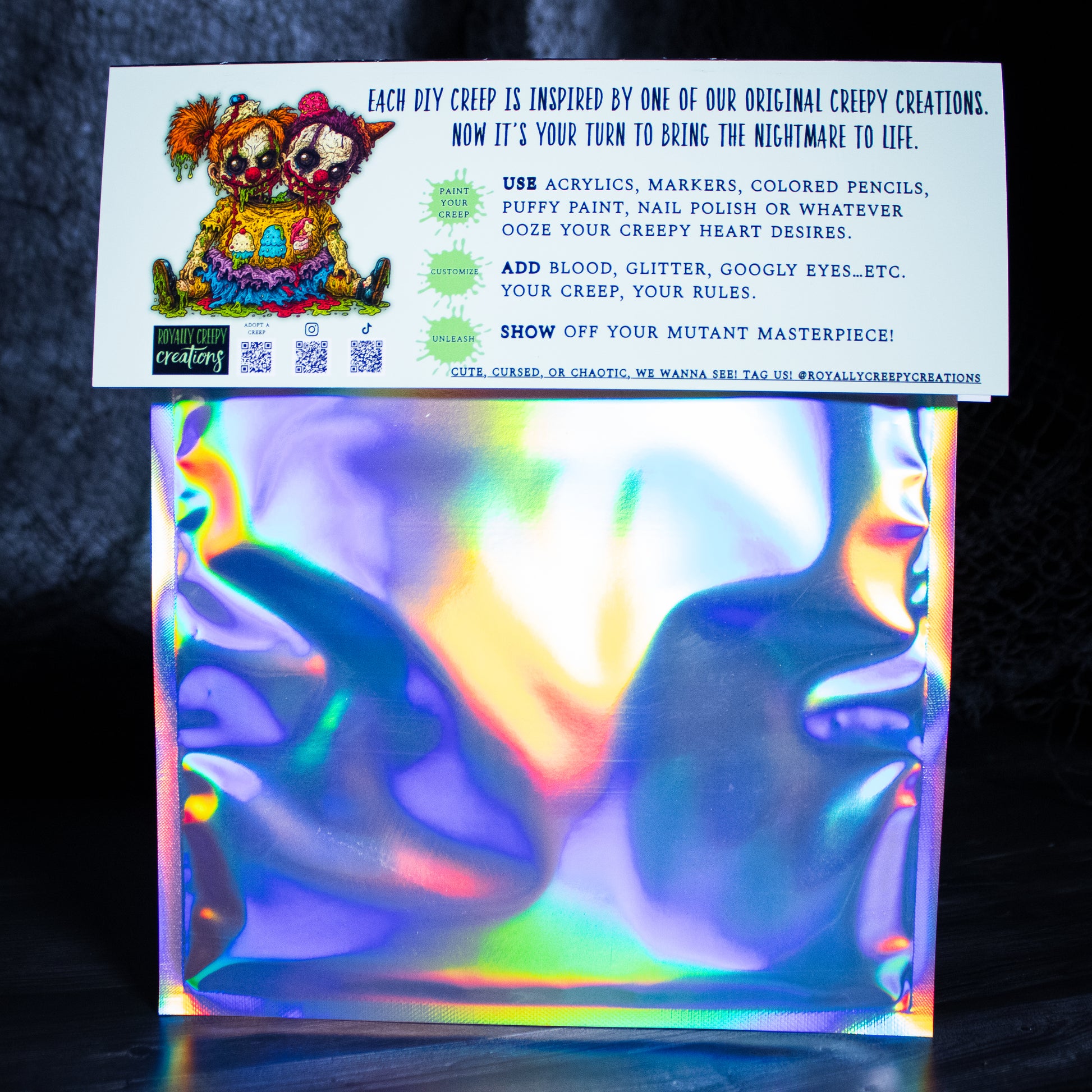 Turn a blank Royally Creepy character into a chaotic masterpiece. Paint it, slime it, glitter-bomb it, whatever your creepy heart desires. Acrylics, markers, puffy paint, nail polish… if it sticks, it works.
