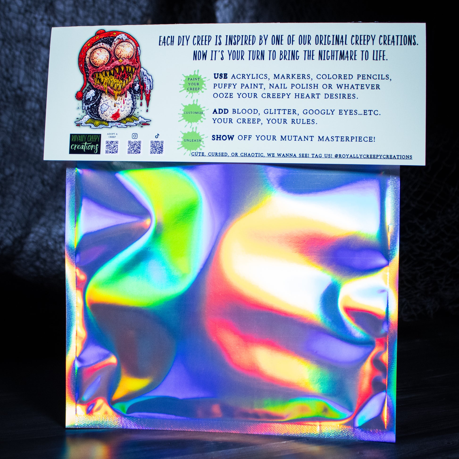 Turn a blank Royally Creepy character into a chaotic masterpiece. Paint it, slime it, glitter-bomb it, whatever your creepy heart desires. Acrylics, markers, puffy paint, nail polish… if it sticks, it works.