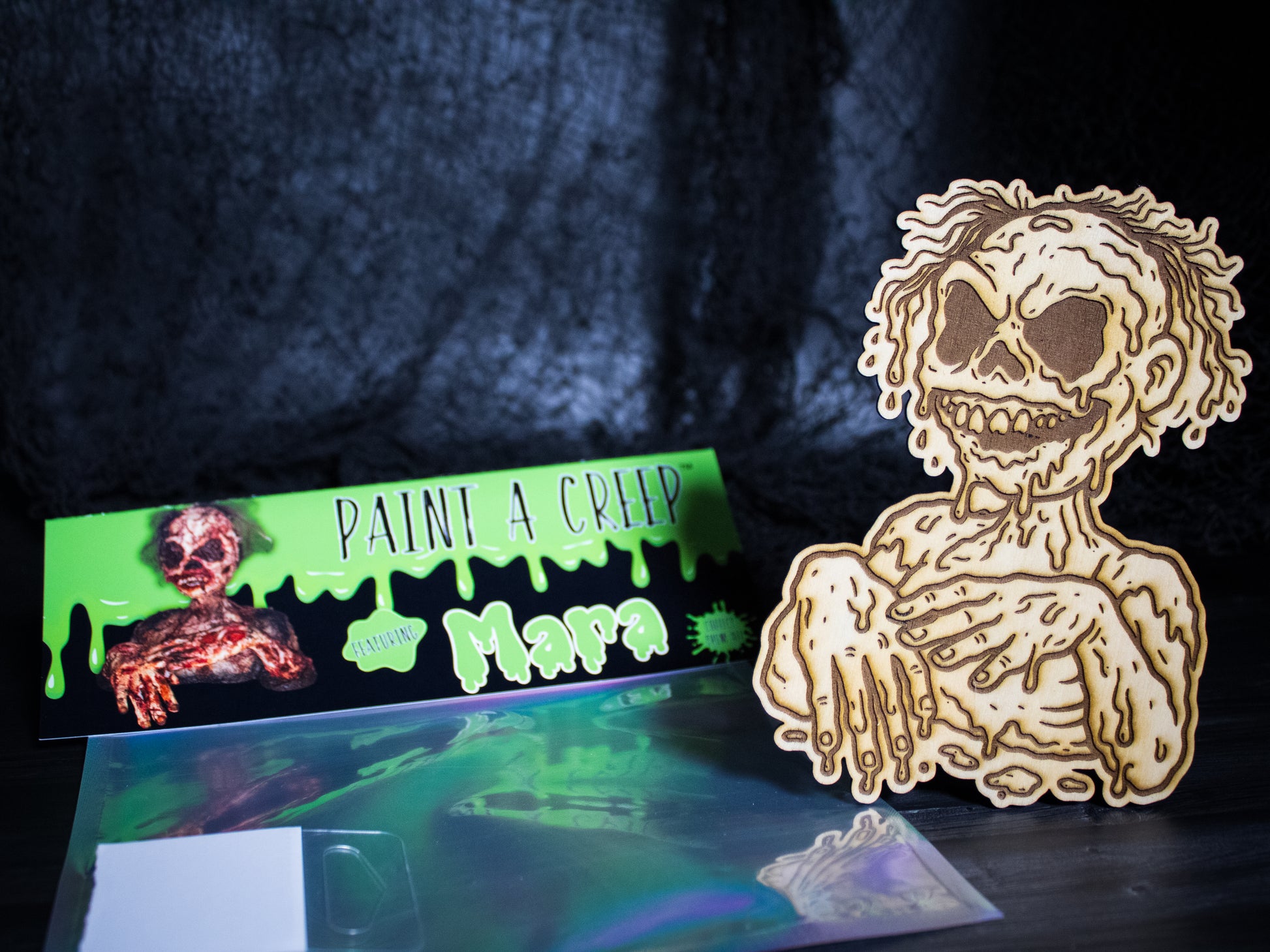 - 1 laser-cut basswood Creep (smooth, ready to mutate) approximately 6" on the widest side and 1/8" thick