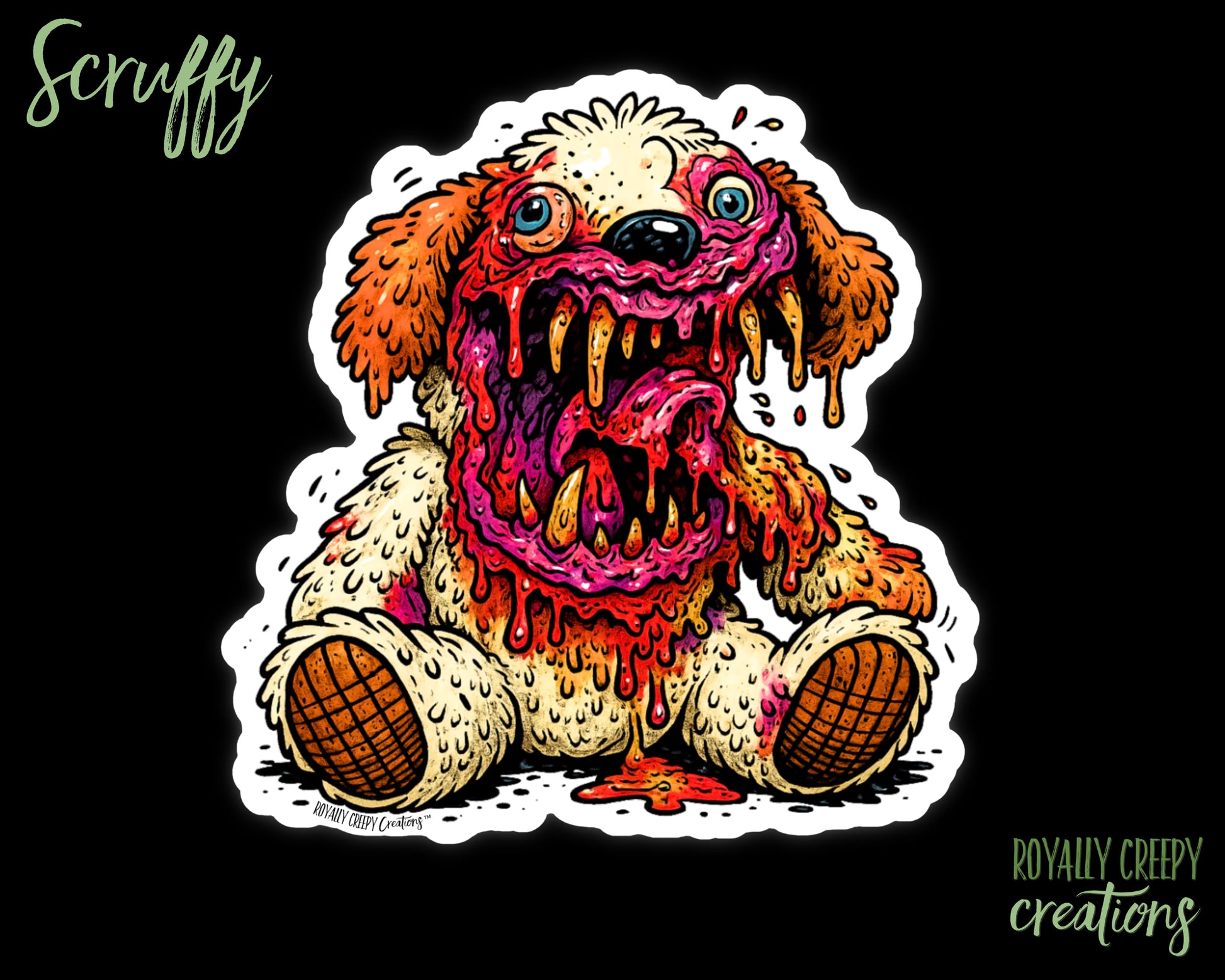 Full transparency: These creepy-cute sticker designs are made using a combo of my original handmade creepy creations and AI-assisted illustration tools.