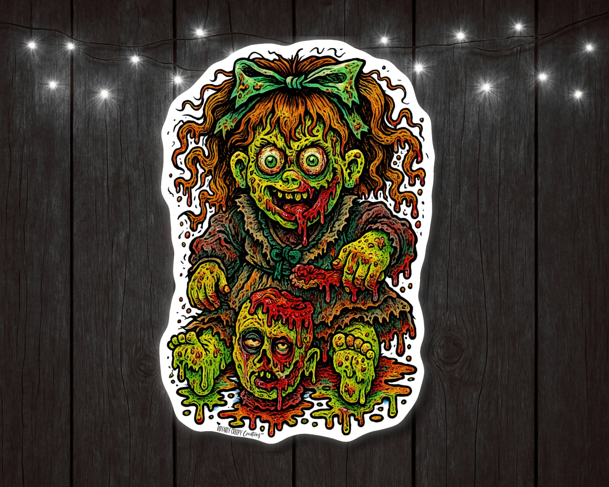 Slap some creepy cuteness on your laptop, water bottle, or unsuspecting victims... uh, I mean surfaces. 🩸 Each disturbingly adorable sticker is spawned from my original handmade Creeps and digitally cursed into cartoon form. 🧟 They’re durable, water resistant, scratch resistant, and sealed tighter than a crypt with glossy laminate.