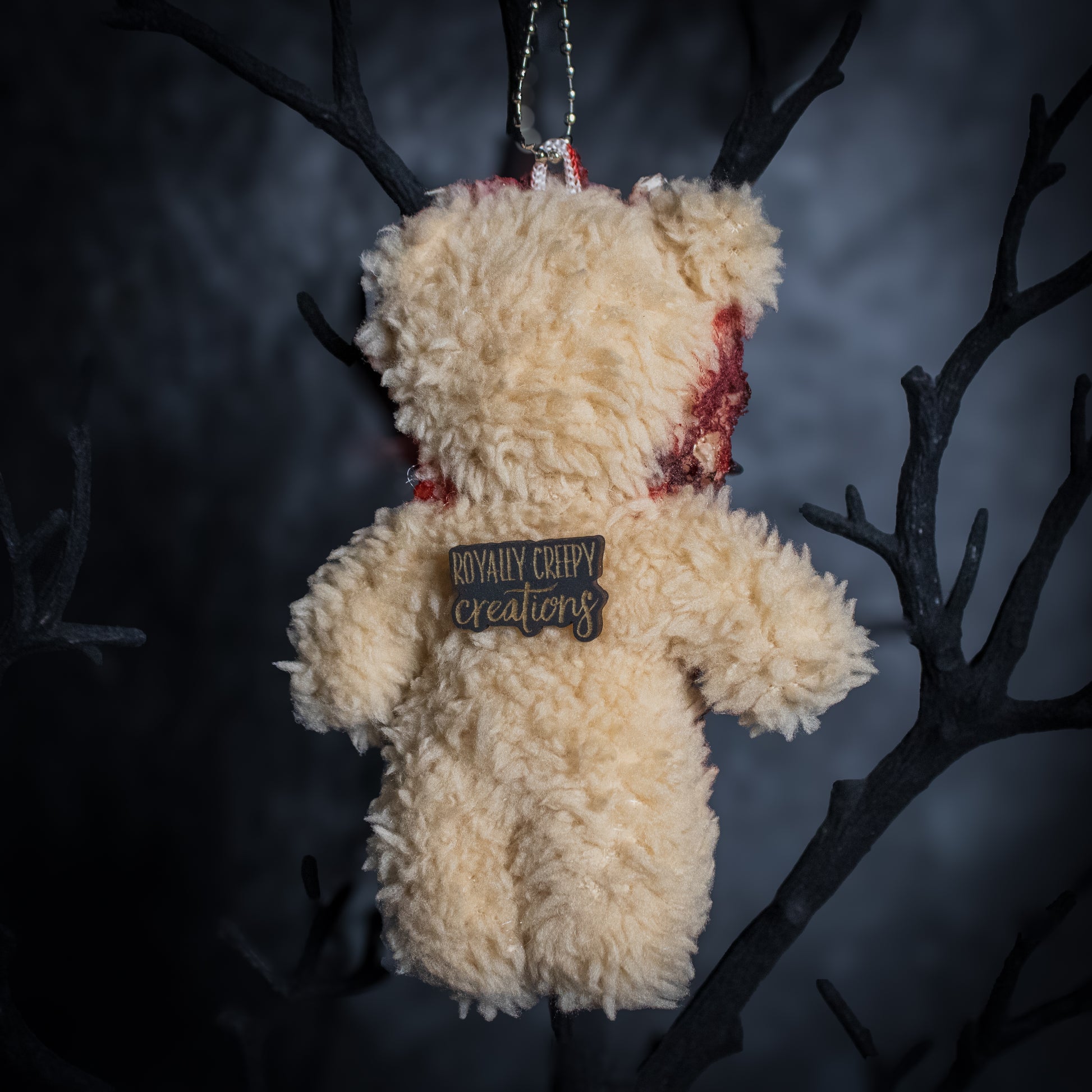 This is small plushie that was re-designed and hand crafted into something new by Royally Creepy Creations. This is a one of a kind creation that you can’t get anywhere else. This is intended to be a creepy art piece. Any distressing, cracking, discoloring, etc. are considered intentional and add character and originality to to the art piece.