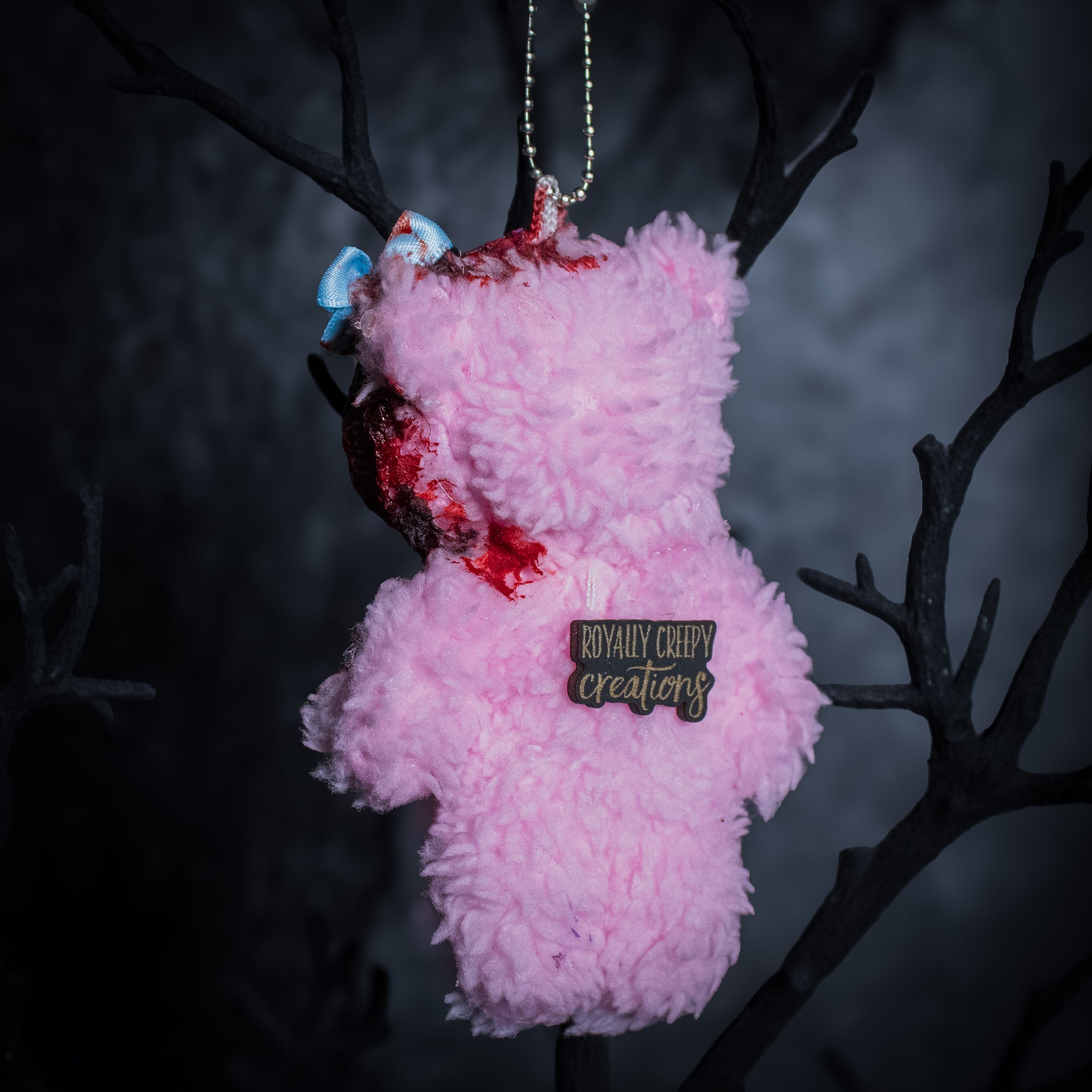 This is small plushie that was re-designed and hand crafted into something new by Royally Creepy Creations. This is a one of a kind creation that you can’t get anywhere else. This is intended to be a creepy art piece. Any distressing, cracking, discoloring, etc. are considered intentional and add character and originality to to the art piece.