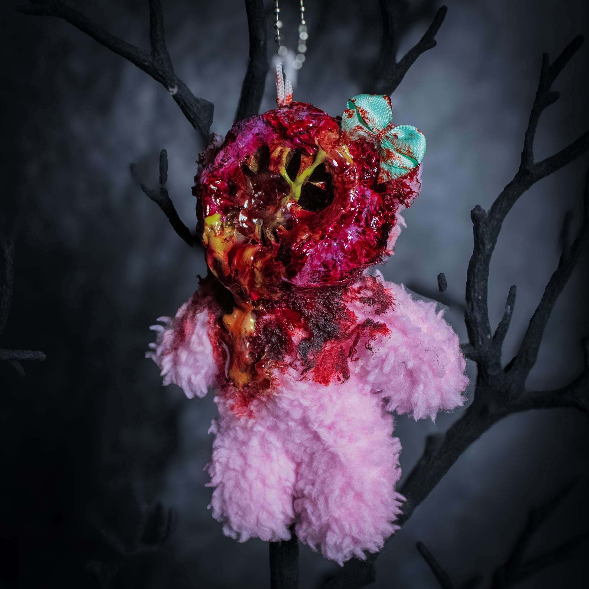 This is small plushie that was re-designed and hand crafted into something new by Royally Creepy Creations. This is a one of a kind creation that you can’t get anywhere else. This is intended to be a creepy art piece. Any distressing, cracking, discoloring, etc. are considered intentional and add character and originality to to the art piece.