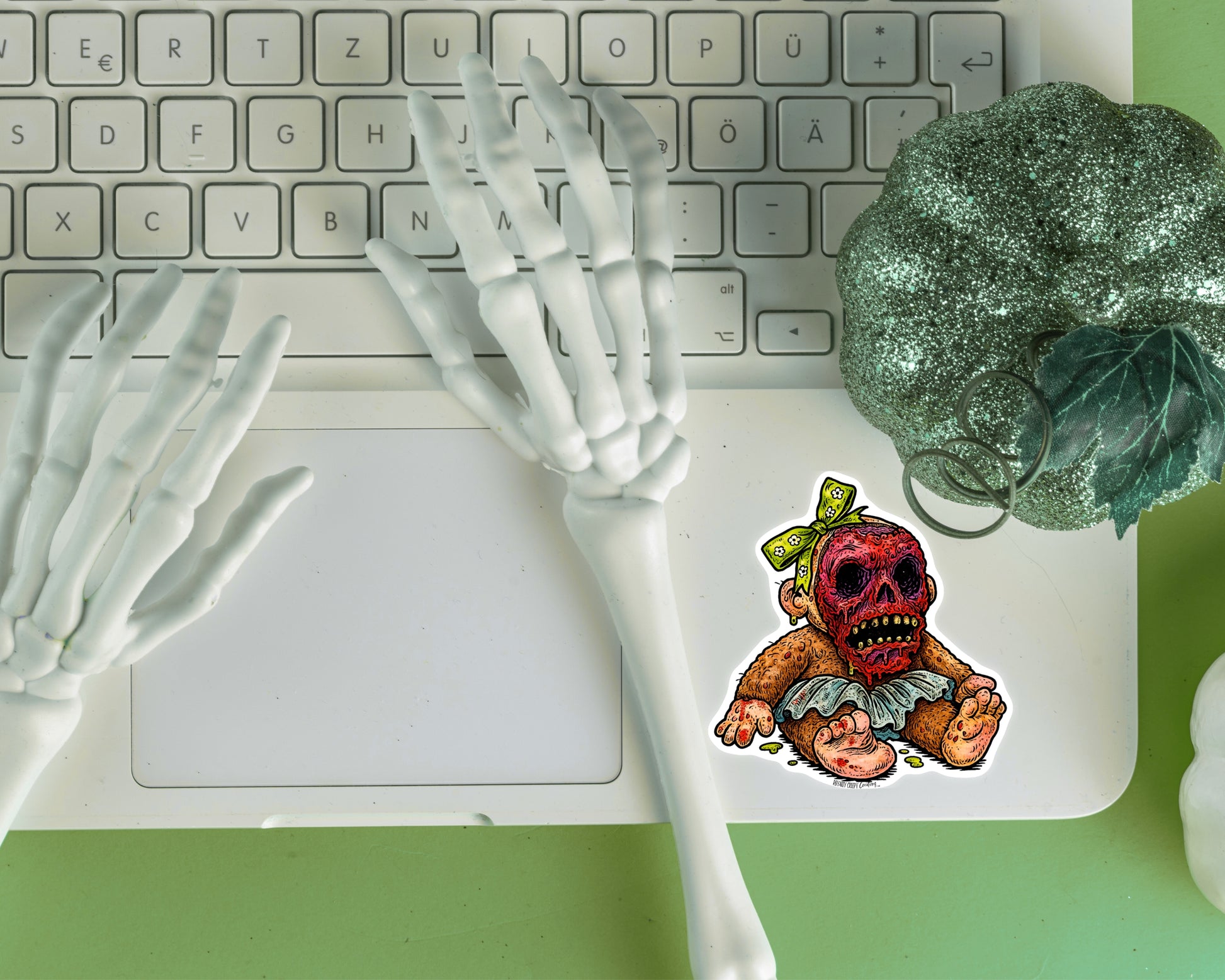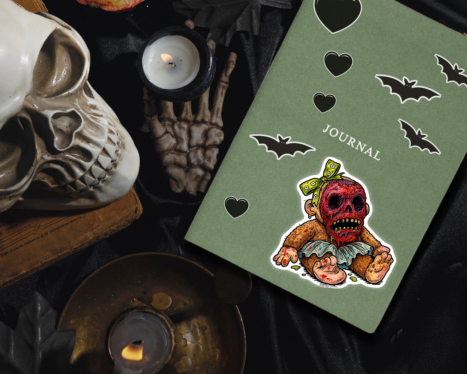 Slap some creepy cuteness on your laptop, water bottle, or unsuspecting victims... uh, I mean surfaces. 🩸 Each disturbingly adorable sticker is spawned from my original handmade Creeps and digitally cursed into cartoon form. 🧟 They’re durable, water resistant, scratch resistant, and sealed tighter than a crypt with glossy laminate.